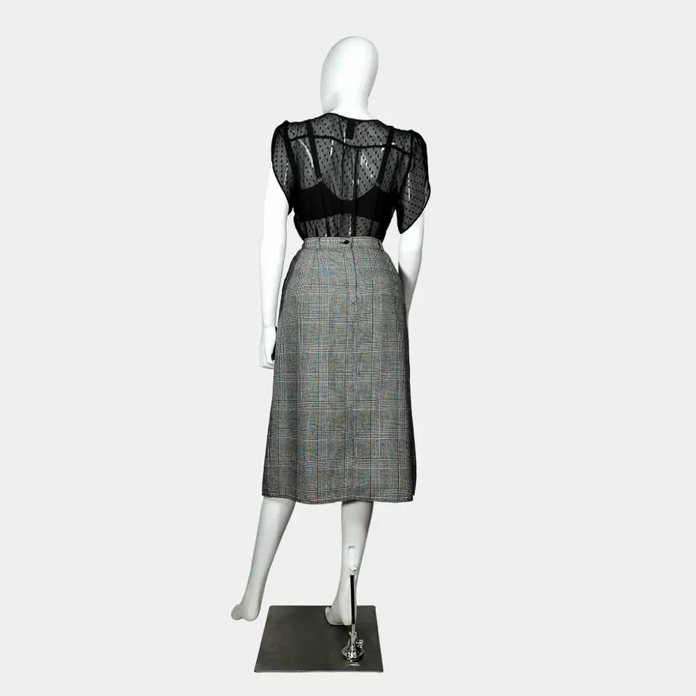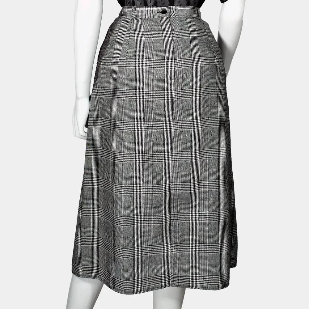 Black and white coloured elegant Canda long plaid skirt in a soft fabric blend.