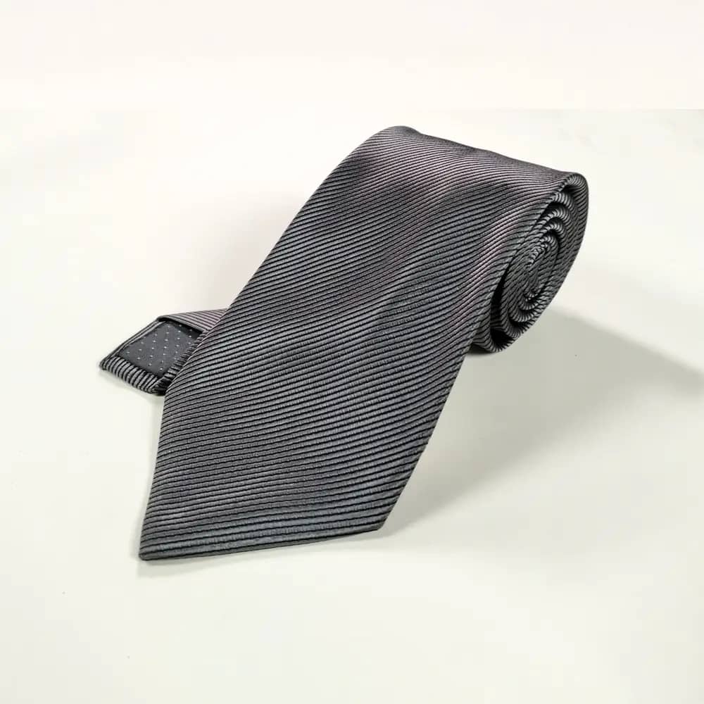 This Classic striped tie is plain grey, in very good condition with length of 61 inches, and of traditional polyester fabric.