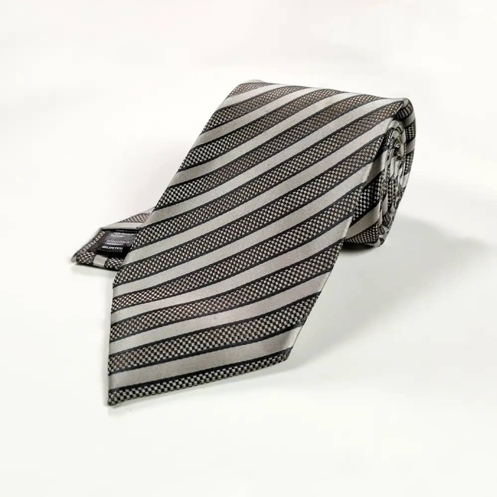 This elegant Burton striped tie of brown polyester fabric, is 60 inches in length and in good condition.