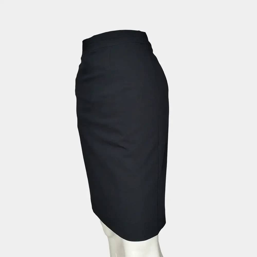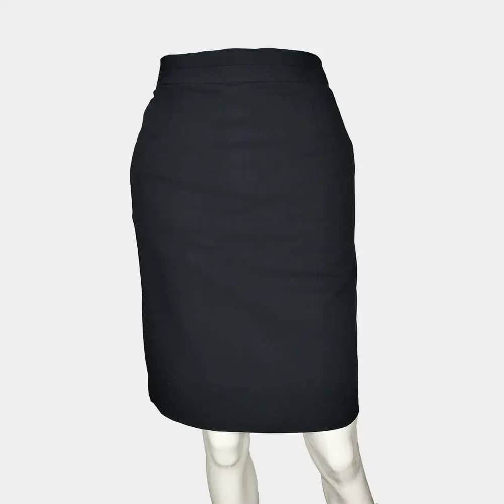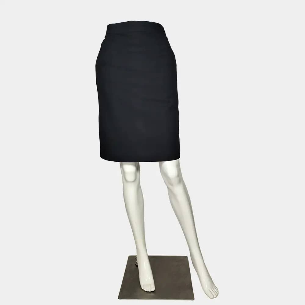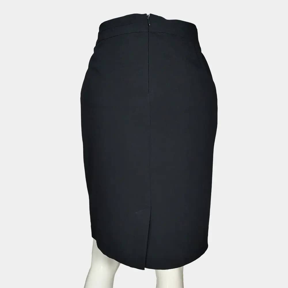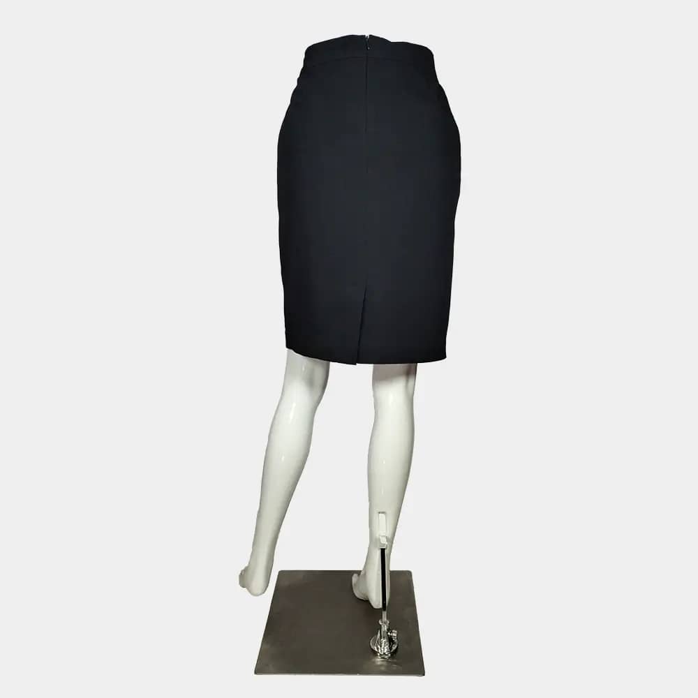 esmara short length, straight fit skirt in 73% Polyester, 20% Viscose, 7% Elastin fabric with a straight waist band, a concealed zip and button at the back, a straight-cut hem with a slit at the back, and lined.