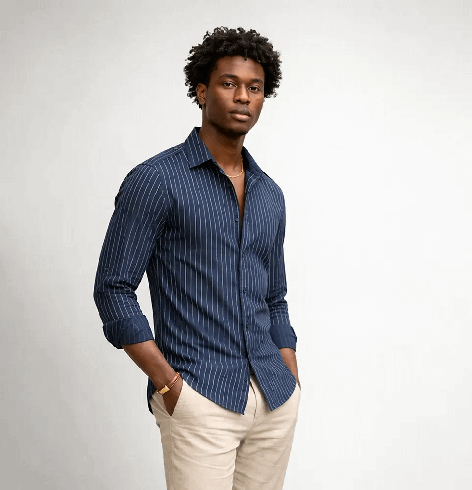 This Navy Striped Topman Men’s Shirt delivers a sharp, contemporary look designed for the modern man who values both comfort and style. Crafted from a durable 65% polyester and 35% cotton blend, this slim fit shirt offers the perfect balance of breathability, wrinkle resistance, and long-lasting wear.