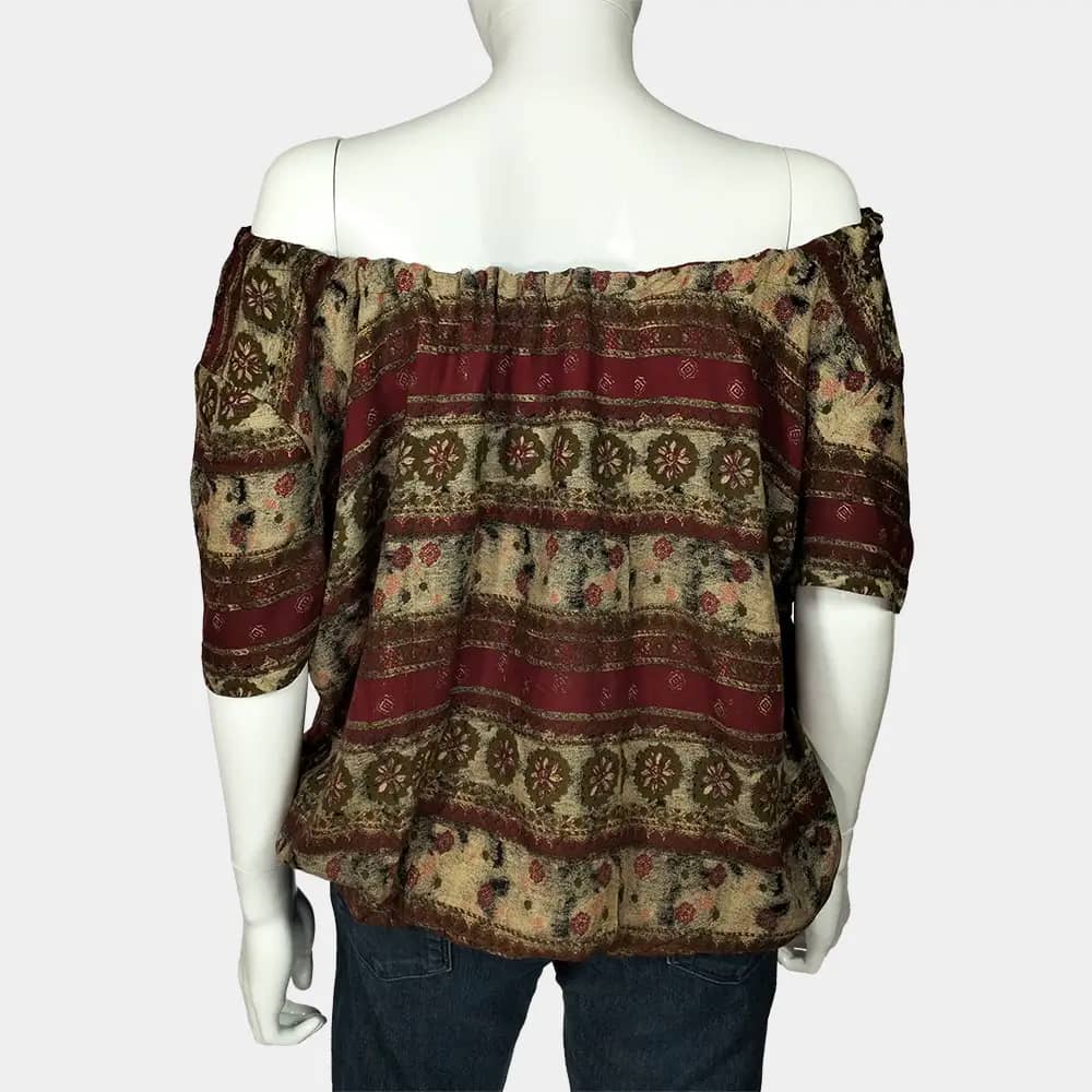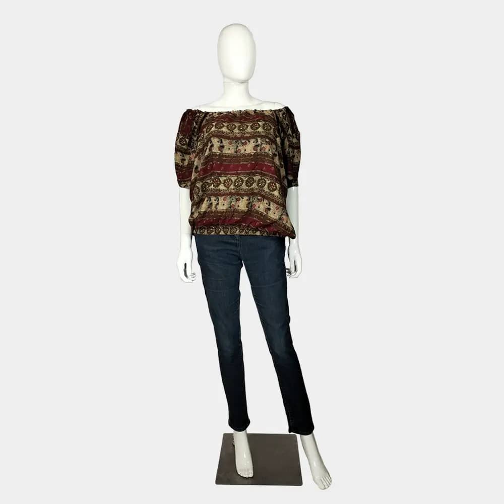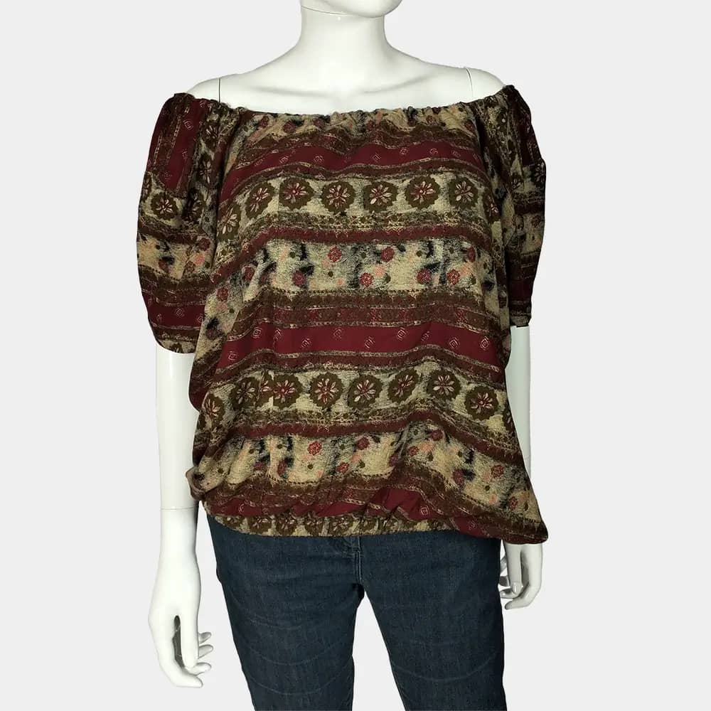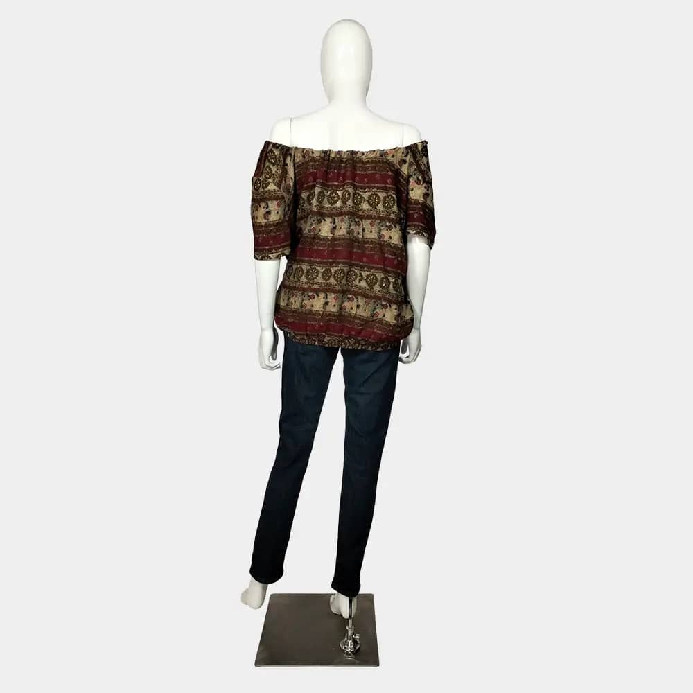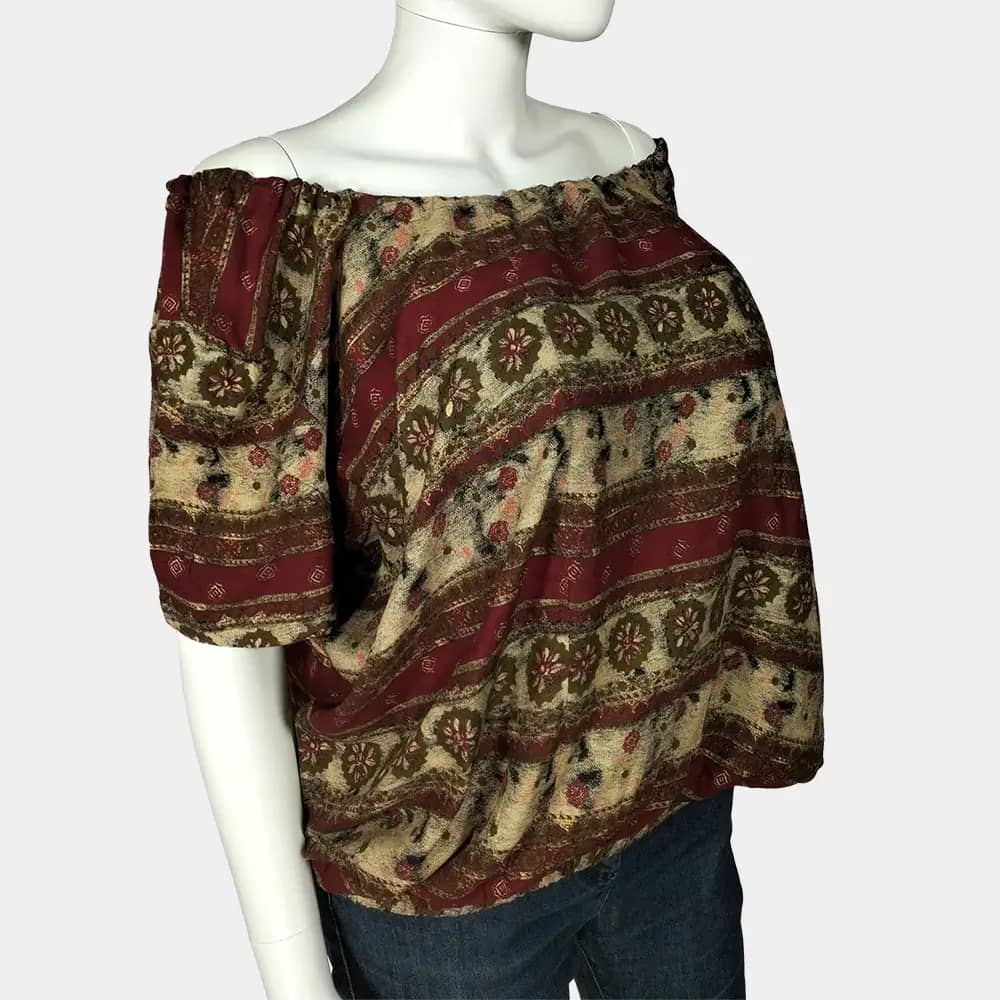 A comfortable off-the-shoulder top in a breathable material. It features an elasticated ruched neckline and hemline line for a snug fit.