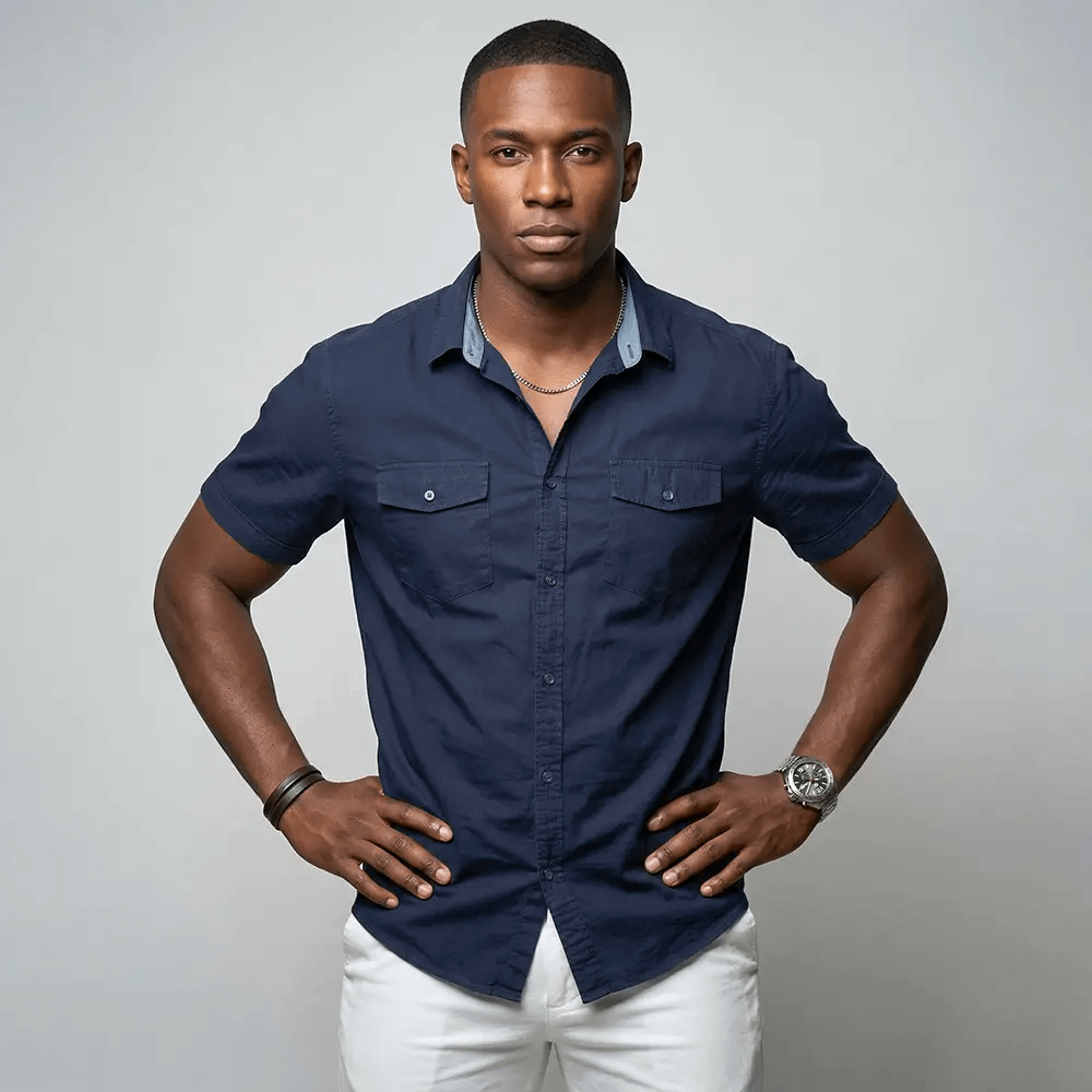 This H&M Men’s 100% Cotton Shirt is a sharp, everyday essential crafted from 100% cotton for breathable comfort and easy wear. In a versatile navy tone with a subtle contrast inner-collar detail, it’s the kind of short-sleeve button-up shirt that moves effortlessly from casual days to smart-casual nights.